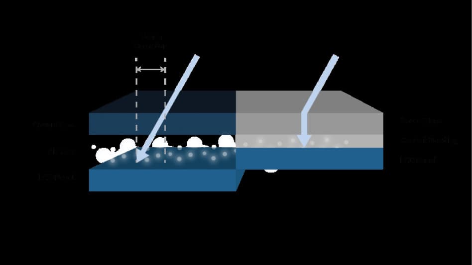 Sklejenie matrycy LCD z szybą zmniejsza efekt paralaksy, kąt refrakcji światła jest znacznie mniejszy, a co za tym idzie, poprawia się precyzja detekcji dotyku.