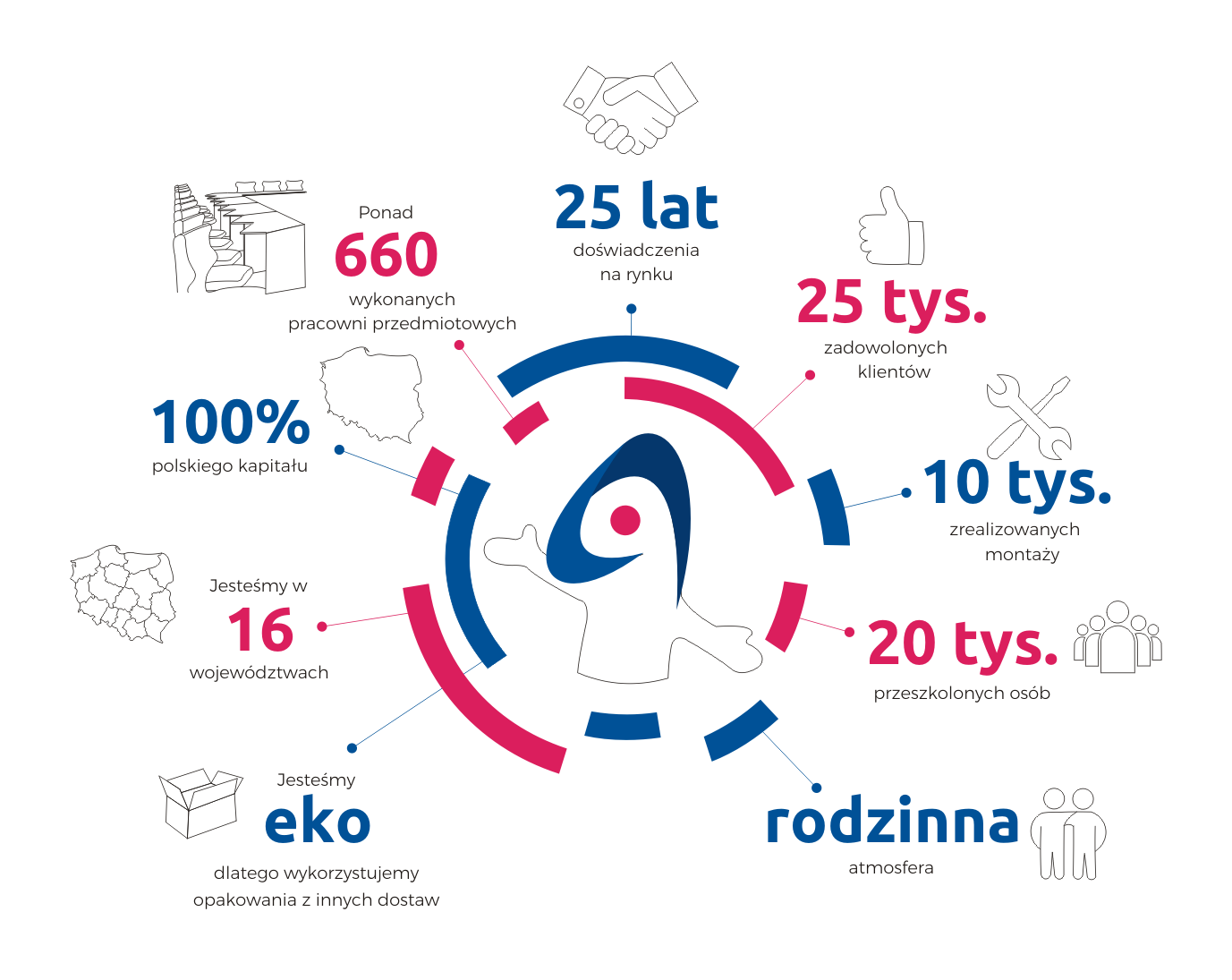 Aktin jest firmą rodzinną z 25-letnią historią, którą tworzą ojciec, dwie córki, ich mężowie, oraz pracownicy, których trzon jest z nami od kilkunastu lat. Nasza siła polega na wzajemnym wsparciu, ale i różnorodności naszych zainteresowań. Razem tworzymy szkołę przyszłości. Projektujemy przyjazne, ergonomiczne i nowoczesne pracownie. Każdą z nich tworzy od podstaw zespół ściśle współpracujących ze sobą ludzi. Podstawą naszego sukcesu jest umiejętność grania do jednej bramki. Handlowiec musi wsłuchać się w potrzeby szkoły, żeby dobrać optymalne rozwiązanie, projektant wnętrz oraz grafik tworzą projekt i wizualizację, która jest produkowana na zamówienie, a następnie montowana na miejscu w szkole. Stale wprowadzamy nowe technologie do szkół. Z największych targów edukacyjnych w Europie przywieźliśmy pomysł wykorzystania wirtualnej i mieszanej rzeczywistości w nauczaniu wieloprzedmiotowym. Wizualizacja miejsc w trybie 360’, trójwymiarowe obiekty i bijące serce na wyciągnięcie ręki- to wszystko przenosi lekcje w zupełnie inny wymiar. Nazywamy się różową aktinową rodziną i taką atmosferę tworzymy każdego dnia w pracy. Zmieniamy szkołę tak, aby była nowoczesna i inspirująca. Jesteśmy zespołem!